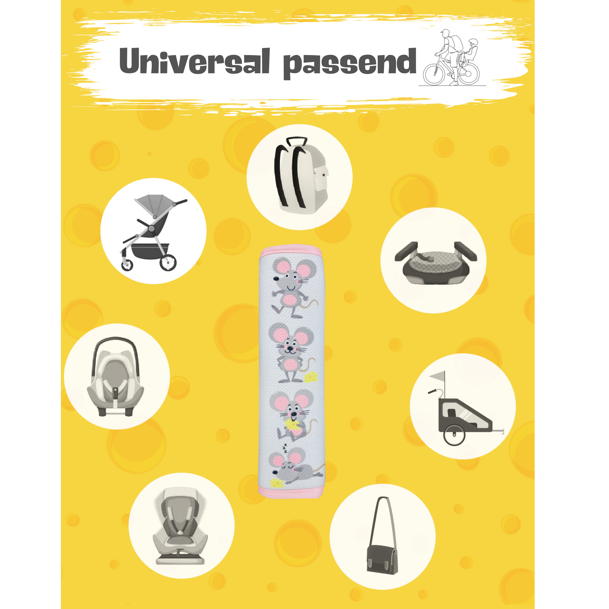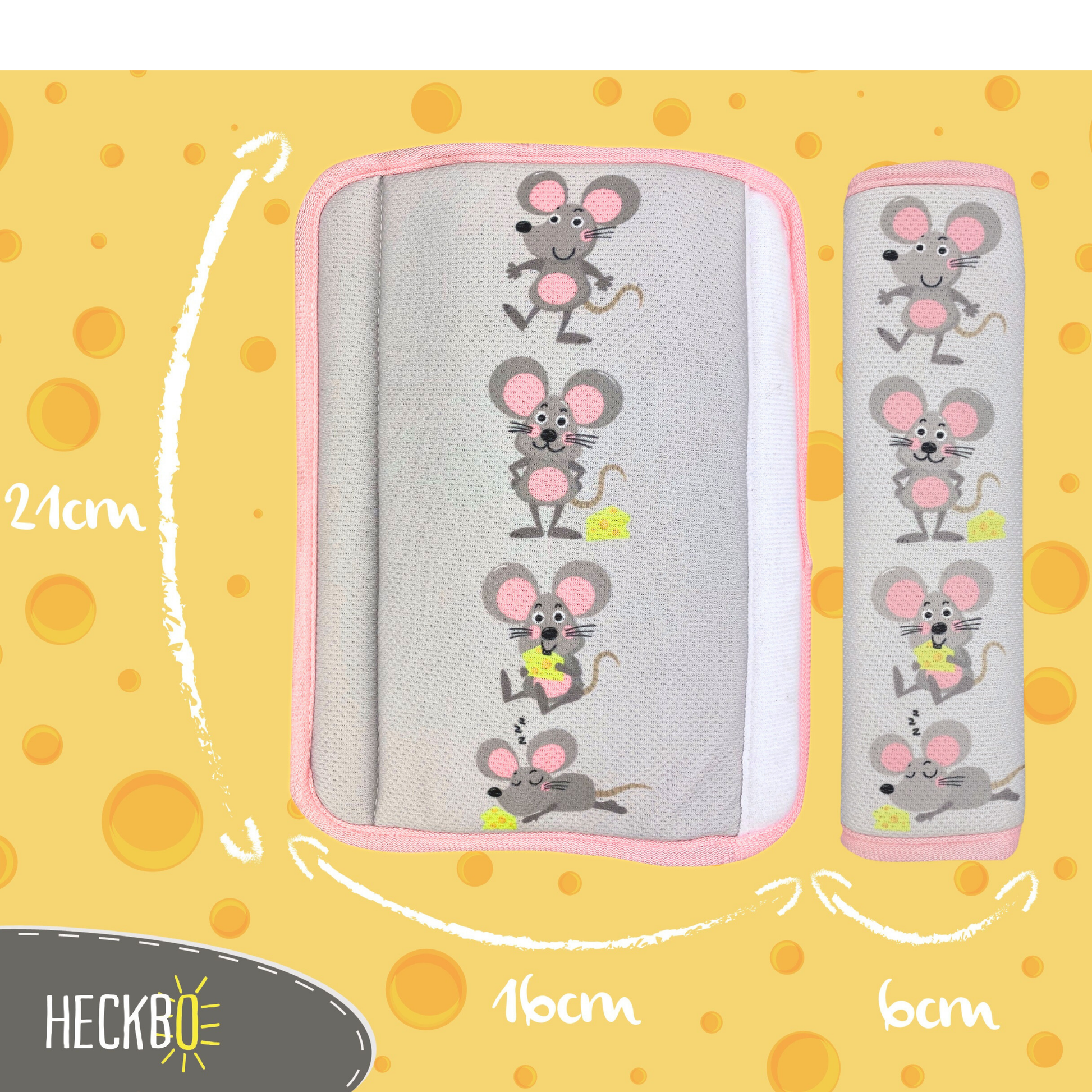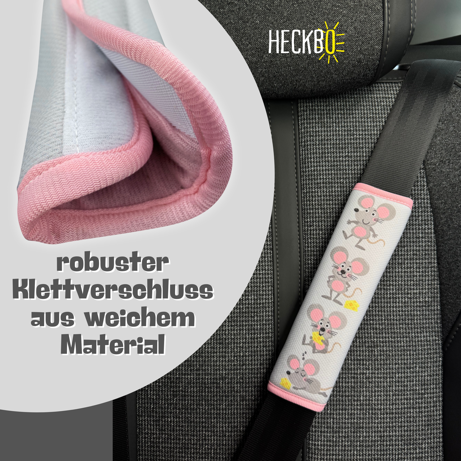 🐭 KINDERGERECHTES MAUS-MOTIV: HECKBO Gurtschoner mit niedlichem Maus-Design in freundlichen Farben – ideal für kleine Tierfreunde und ein liebevolles Detail für Babyschale, Kindersitz oder Buggy.