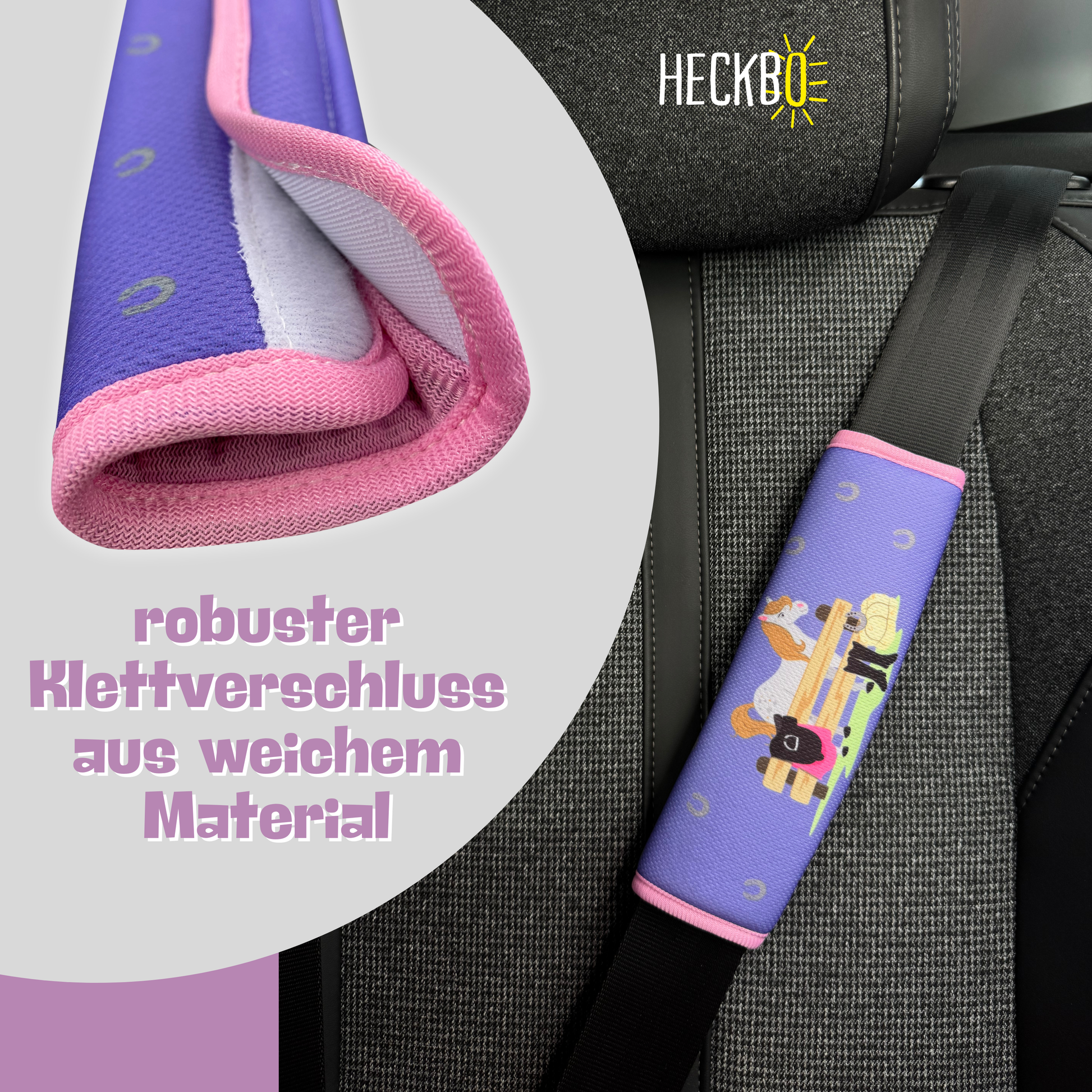 • 1x oder 2x HECKBO Gurtkissen – Pferde/Bauernhof-Motiv
