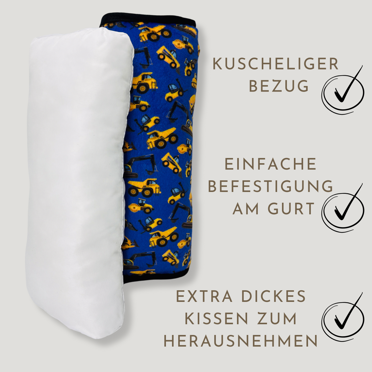 🛠️ SPIELERISCHES DESIGN: Das farbenfrohe Baufahrzeuge-Design macht jede Autofahrt zu einem kleinen Abenteuer. Kinder lieben es, umgeben von ihren Lieblingsfahrzeugen zu reisen und sich wohlzufühlen.