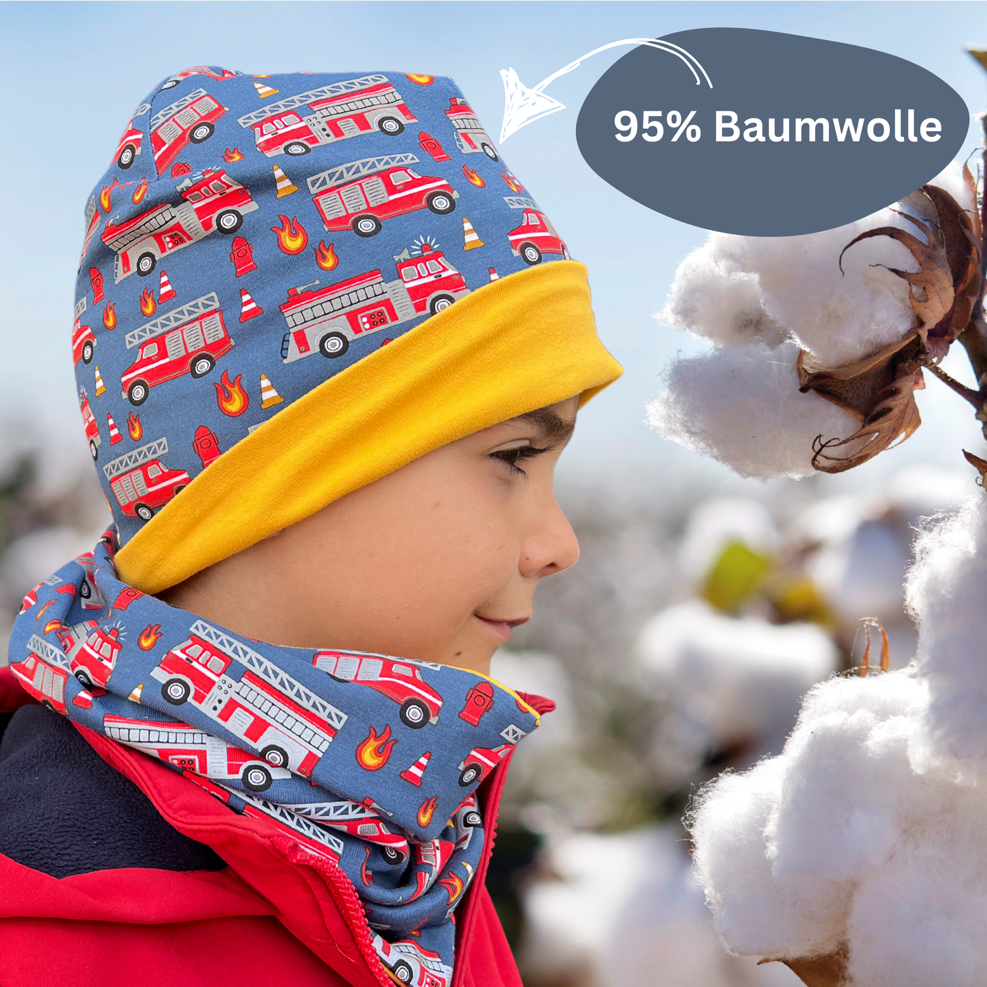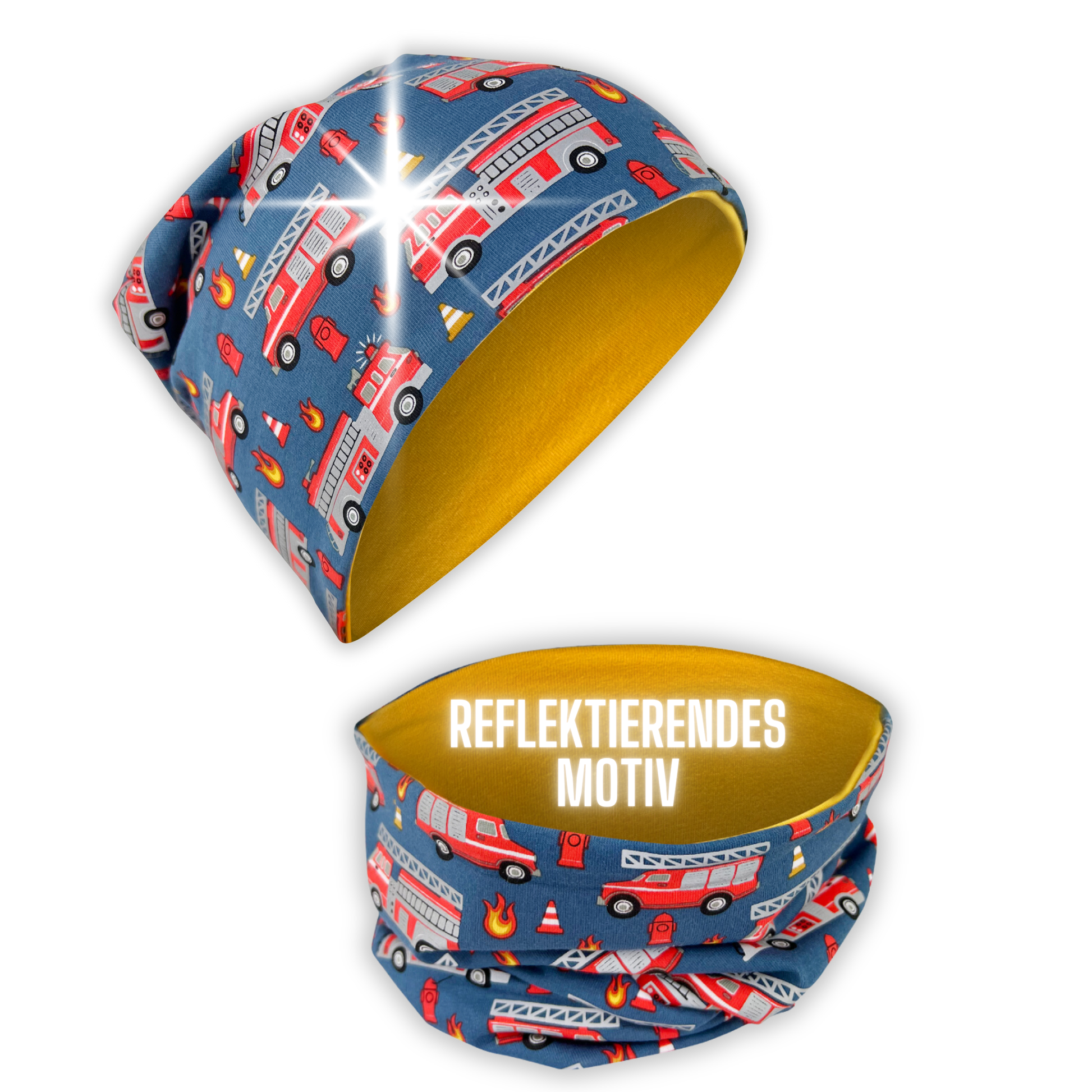 🚒 Mütze & Schal im Set – mit reflektierendem Feuerwehr-Motiv