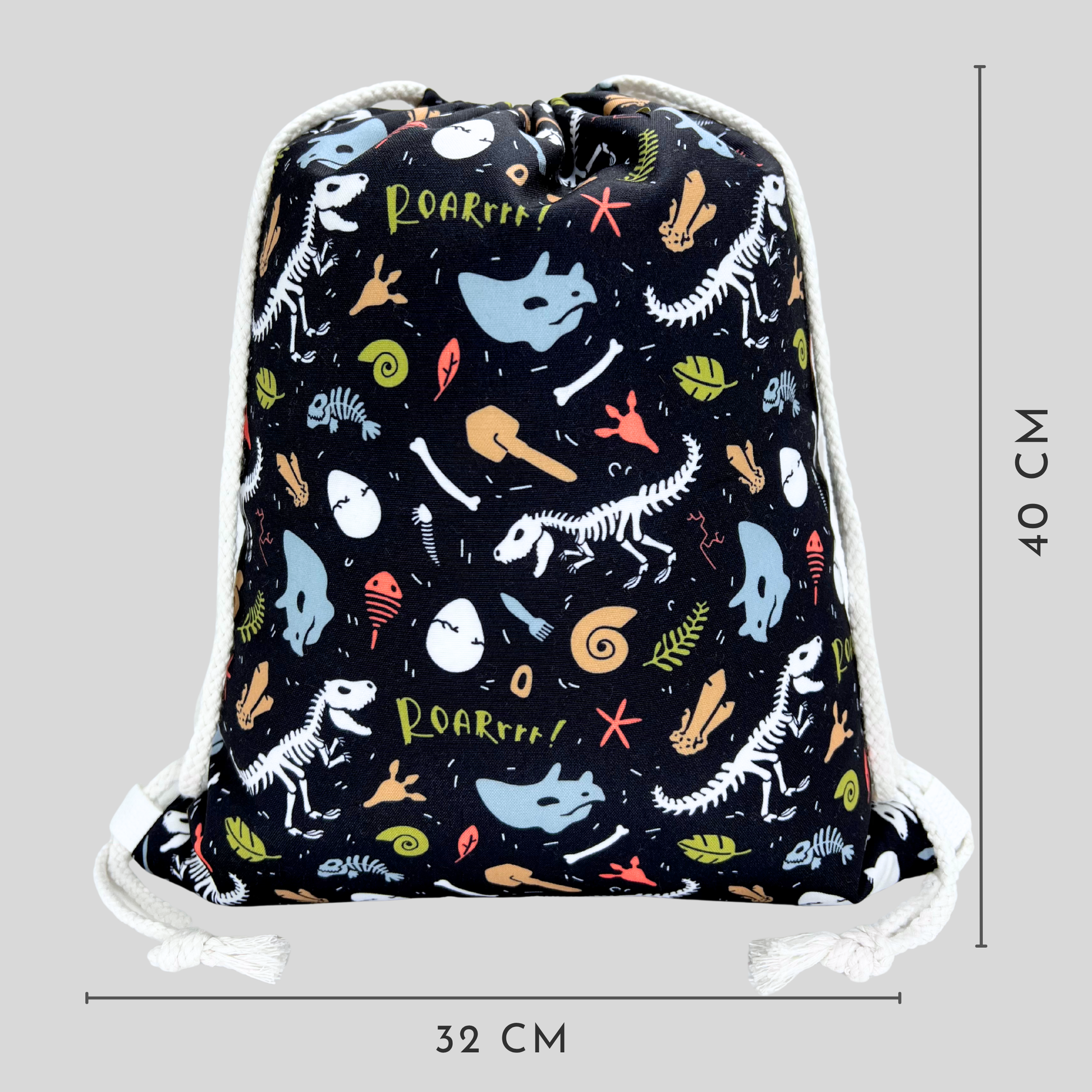 🦖 COOLES DINOSAURIER-DESIGN: Dieser HECKBO Turnbeutel ist ein echtes Highlight für Dino-Liebhaber! Auf beiden Seiten sind Dinosaurier-Skelette in kräftigen Farben aufgedruckt. Ein cooles Motiv, das alle kleinen Jungs begeistern wird.
